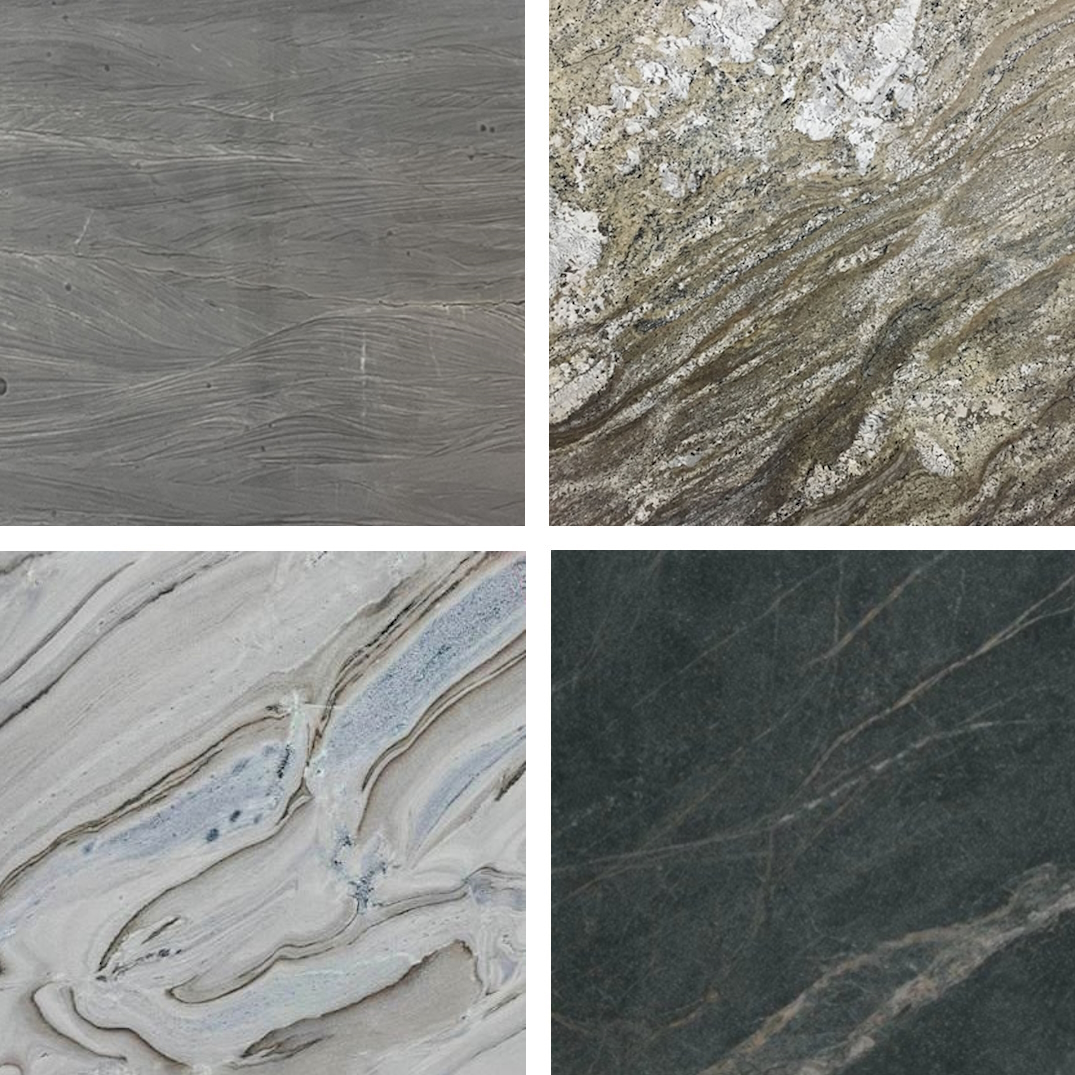 Natural stone covers a wide variety of mineral formations. Sandstone, marble, soapstone, granite, and quartzite are the most commonly used materials for countertops. Of these, granite is the most popular. Granite tends to be the most abundant of the natural materials, providing hundreds of color and pattern choices. Its heat, scratch, and stain resistance also make it a high-performance surface and a great option for outdoor applications. Quartzite has been increasing in popularity for countertops as more colors are being discovered, expanding the number of options available. Quartzite is formed when sandstone is subjected to immense heat and pressure. This amazing natural process has given us some of the most unique and beautiful patterns and colors.